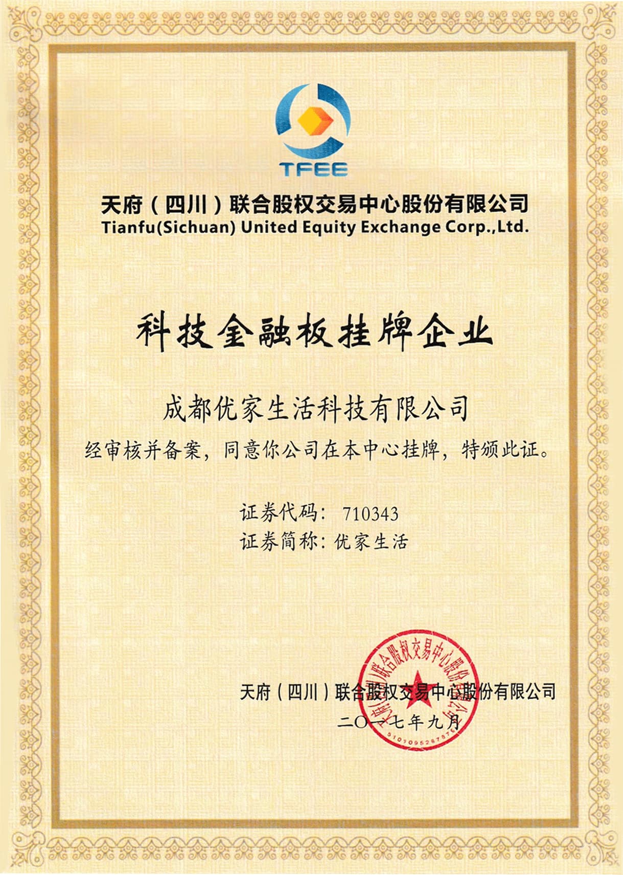 成都優(yōu)家生活科技有限公司目前是四川省房地產(chǎn)業(yè)協(xié)會(huì)常務(wù)理事單位,公司總經(jīng)理是四川省房地產(chǎn)業(yè)協(xié)會(huì)常務(wù)理事。2015年11月,公司獲得了2015年成都高新區(qū)創(chuàng)業(yè)孵化專項(xiàng)資金的資助。2016年11月,又獲得了成都高新區(qū)創(chuàng)業(yè)孵化專項(xiàng)資金房租補(bǔ)貼的資助。2017年8月,公司在天府股權(quán)交易中心掛牌,并獲得了政府的相關(guān)獎(jiǎng)勵(lì)。2018年12月,公司通過了國(guó)家高新技術(shù)企業(yè)認(rèn)證。