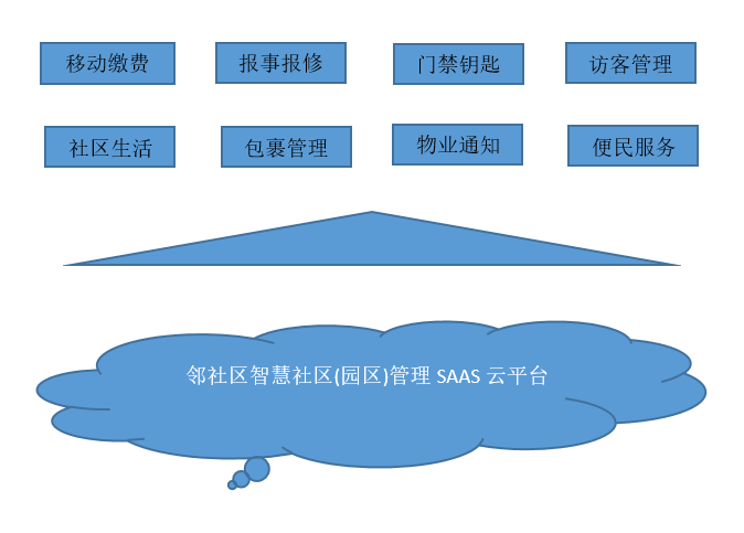 利用公司自主研發(fā)的“鄰社區(qū)”云平臺,住戶可以完成在線自助繳費、自助報修、自助發(fā)放訪客通行證等功能,物業(yè)公司可以在線發(fā)布公告、舉辦小區(qū)活動、進行物業(yè)服務滿意度調(diào)查等,并能有針對性地對業(yè)主提供社區(qū)生活服務?!班徤鐓^(qū)”云平臺還可并入物業(yè)公司遠程視頻系統(tǒng)、物業(yè)遠程呼叫中心、智能物業(yè)管理系統(tǒng)、智能安防系統(tǒng)、智能健康報警系統(tǒng)等,從而建設智慧社區(qū)和家園,使小區(qū)生活更加智能化。